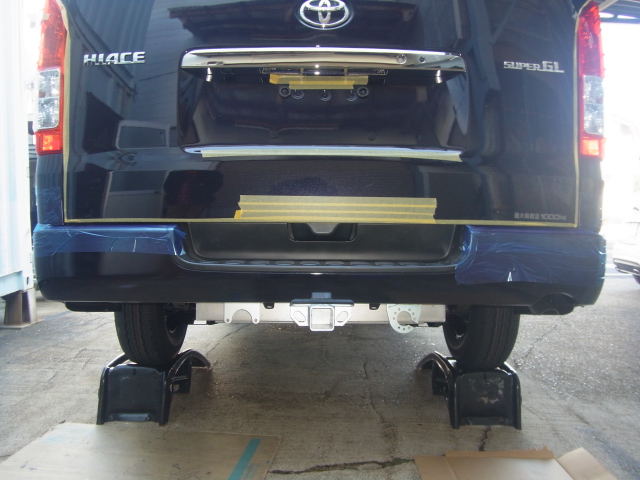ケーワークスオーロラ様からのご依頼で、ハイエース200にヒッチメンバー取付しました。