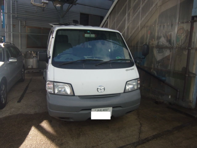 ボンゴバンに特注ヒッチメンバー取付作業をしています。