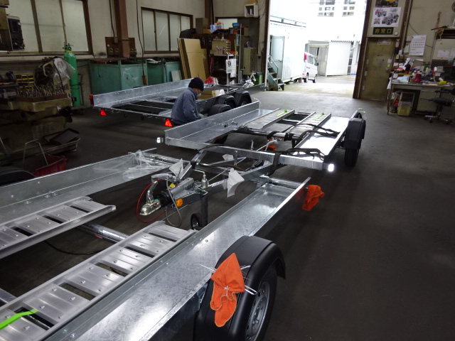 車載トレーラーが3台有って、オプション品を製作したり、仕上げしてます。