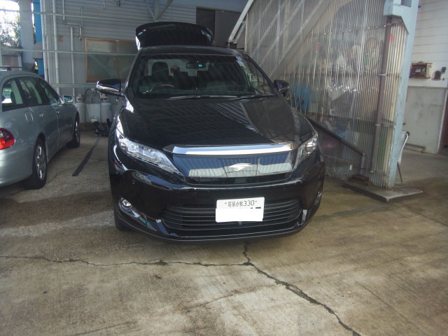 ハリアーハイブリッドが入庫し、特注ヒッチメンバー取付しています。