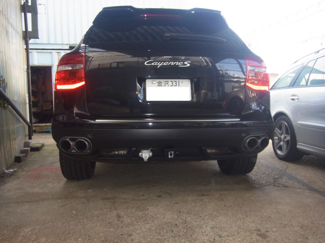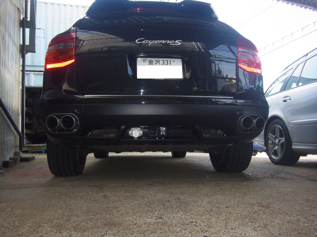 車載トレーラーユーザー様がご来社下さいまして、ポルシェカイエン957型にヒッチメンバー取付しました。