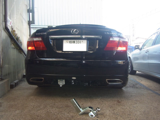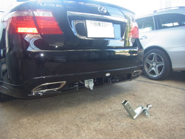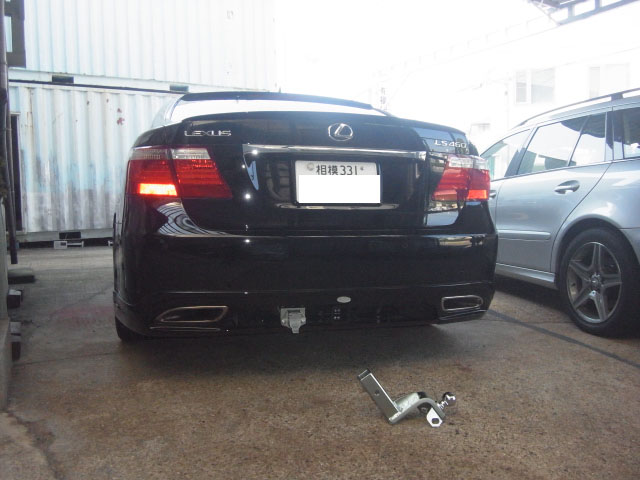 レクサスLS460 特注ヒッチメンバー取付作業が完了しました。