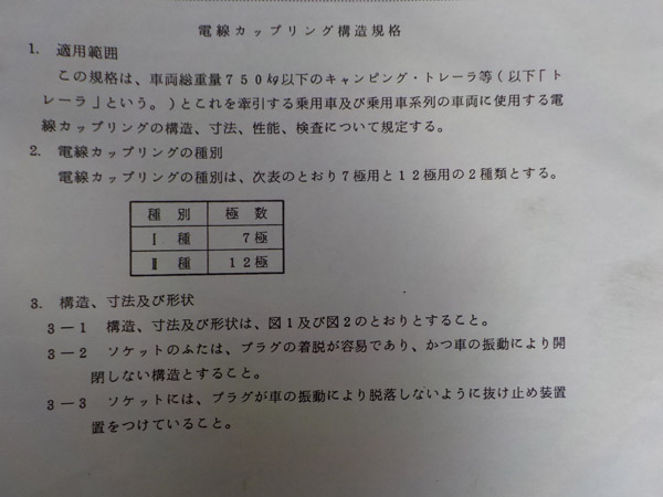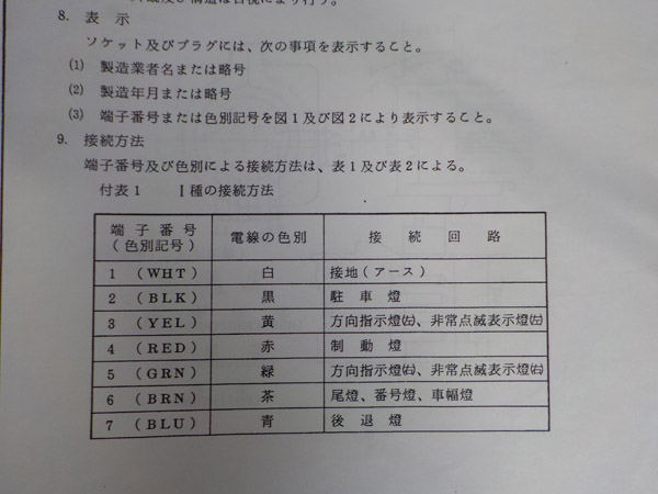 と思うが、これはJIS規格(日本工業規格) で国交省のキャンピングトレーラー等構造基準にも定められた JISⅠ種7極 という規格。