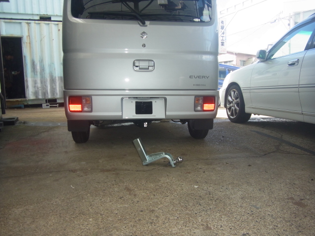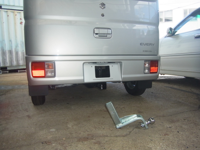 新型エブリィDA17Vが初入庫で特注ヒッチメンバー取付しました。