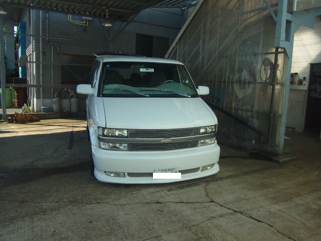 シボレーアストロ ロールパンエアロ車に特注ヒッチメンバー取付してます。