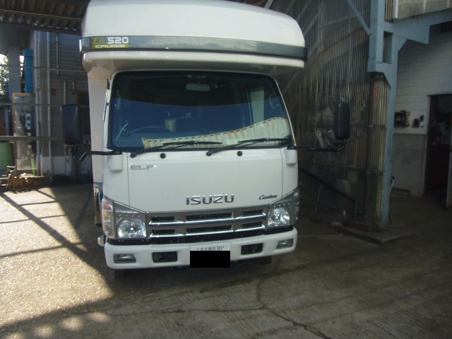 エルフベースのキャンピングカーが入庫し、特注ヒッチメンバー製作取付しています。