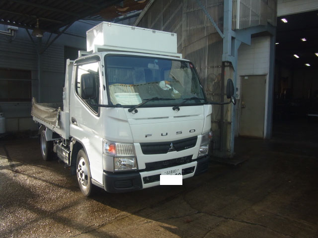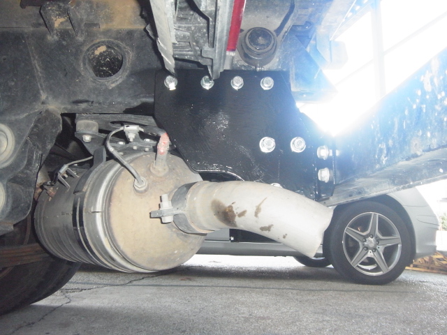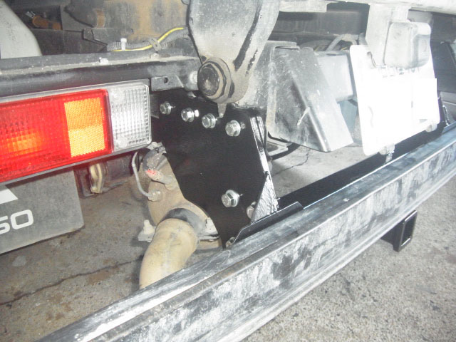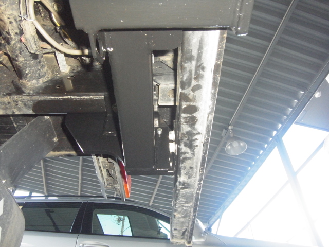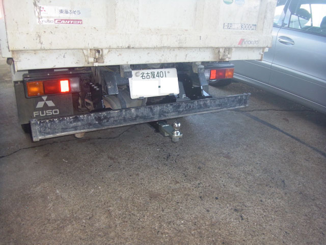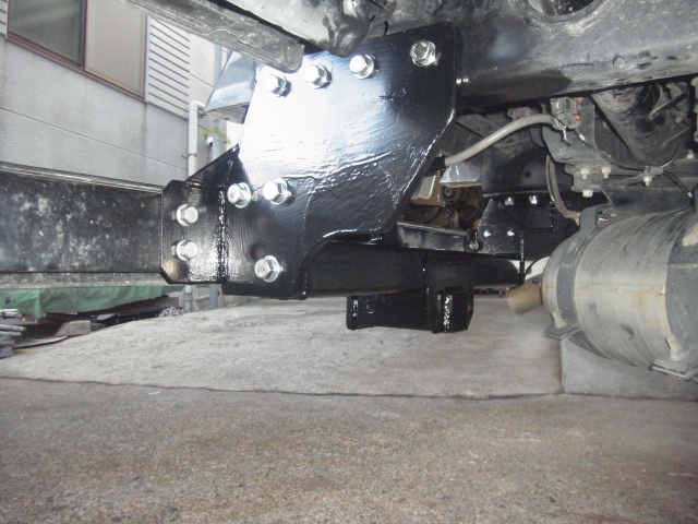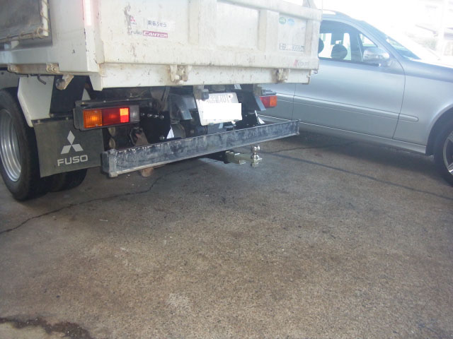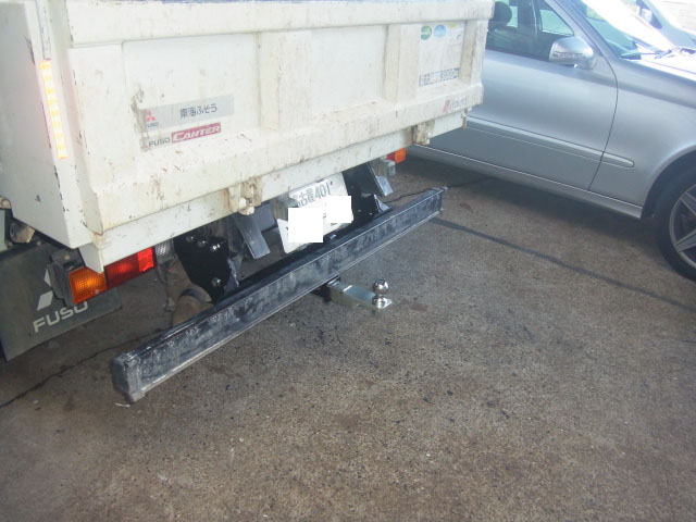 キャンターダンプに特注ヒッチメンバー製作の作業しています。