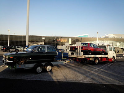 先日納車させて頂きました車載トレーラー http://sunrocky.blog-rpg.com/Entry/1162/ 大活躍のようです。 車載トレーラーは積載バランスが非常に重要なので、自動車販売業者様が積車トラック代わりに何でも積めると言う者では無いですが、きちんと使用方法さえ守れば、一応いろいろな車両を積めます。ただ、この全長ではお客様の所に不動車を取りに行くなんて事はほぼ無理でしょうが。 |