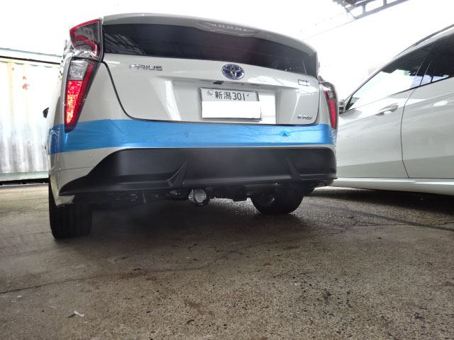 新型プリウスZVW55が入庫して、特注ヒッチメンバー製作取付しています。