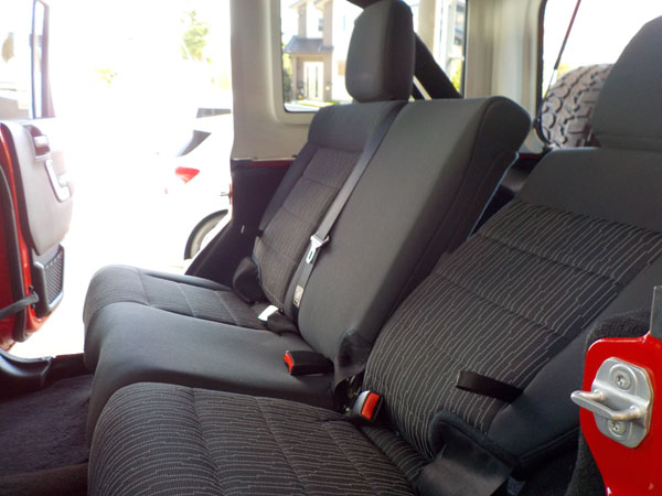 ジープラングラー アンリミテッド が入庫しリクライニングキットの取付を行いました。