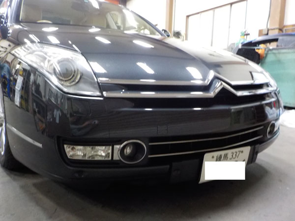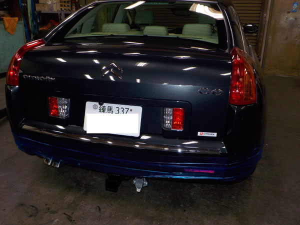 シトロエンC6 が入庫し、特注ヒッチメンバー製作取付しています。