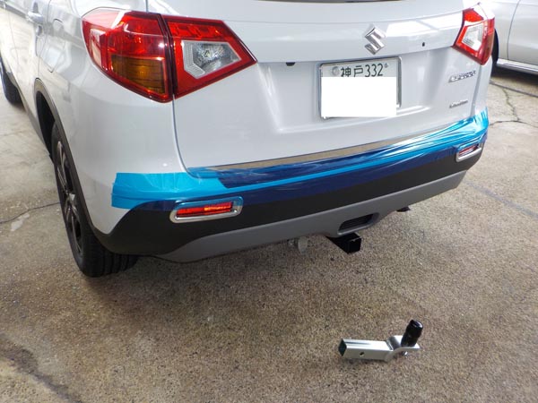 スズキエスクードが入庫し特注ヒッチメンバー製作取付しています。