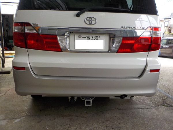 アルファードMNH15Wが入庫し、ヒッチメンバー取付しています。