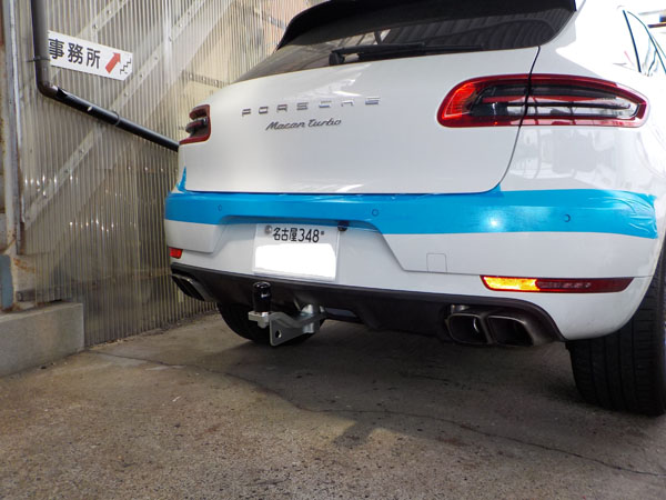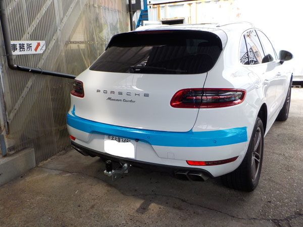 ポルシェマカン が入庫し、ヒッチメンバー取付しました。
