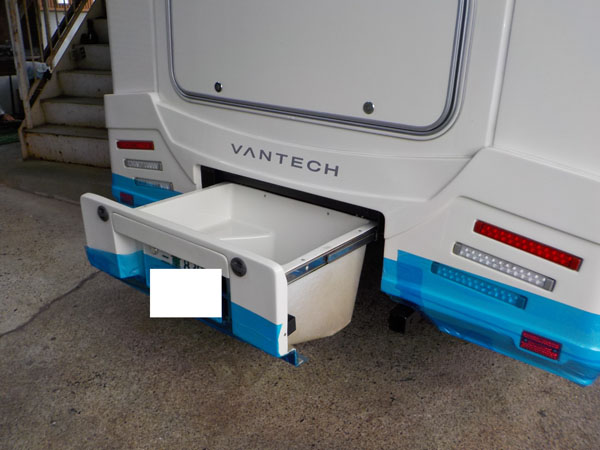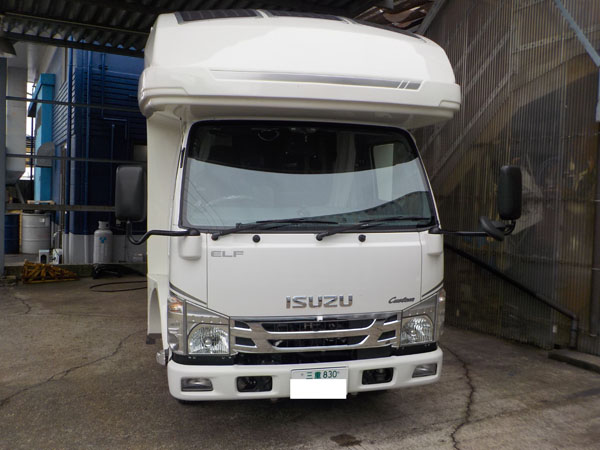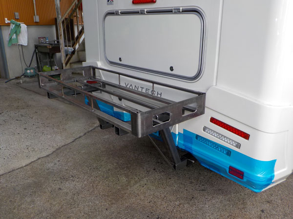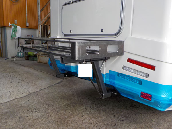 イスズ エルフ キャンパーに特注ヒッチマウントキャリア製作取付しています。
