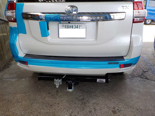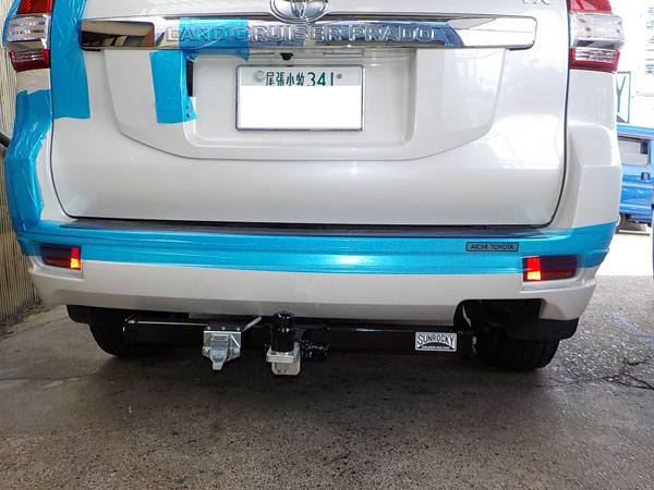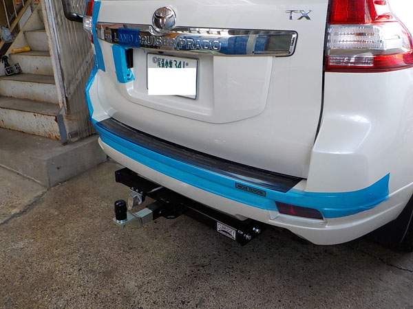 150系プラド エアロが入庫し、ヒッチメンバー取付しました。
