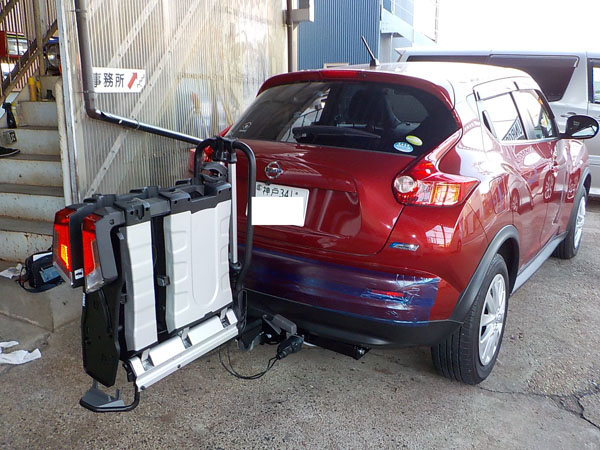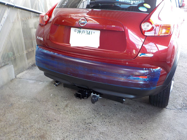 今日は日産ジュークに特注ヒッチメンバー製作取付しています。