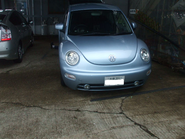 ニュービートルのヒッチメンバー取付作業を行っています。