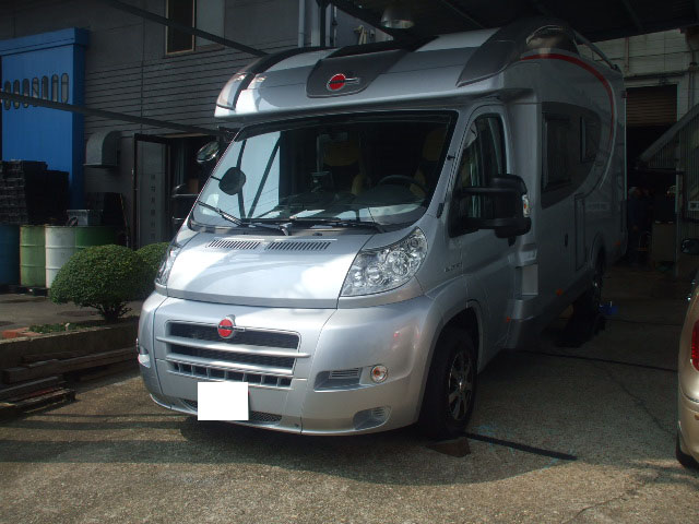 バーストナーのキャンピングカーに特注ヒッチメンバー取付を行っています。