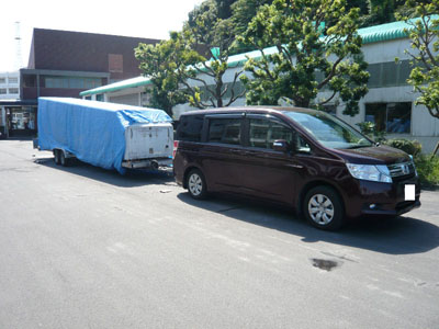 夏休み明け初日に取付を行ったステップワゴンのI様からトレーラー連結の画像が届きました。 トレーラー本体だけで全長12mの圧巻サイズ! 中身はグライダーです。 だから積み荷は軽いんですけど、トレーラーが重い。なんで重いかというと、グライダーのように剛性の低い物は走行中にトレーラーがゆがむと壊れちゃうから。17ftくらいのボートトレーラーってフレームがたわむでしょ。 I様は枕崎グライダークラブ代表 http://homepage2.nifty.com/H23C/ で、鹿児島の航空宇宙工学科もある某工業大学で教鞭をふるわれています。 通常、さすがにステップワゴンでこのサイズの牽引は無理があるけど、格納庫から滑走路までの移動がメインで、なにしろ工業大学の先生ですから金属強度についてご理解があるので、この様な牽引でも取付をお受けしました。それなりに付けてるし、ヒッチメンバーはイキナリ外れる事はない。 一般道の路面の継ぎ目などを高速移動する際は上下荷重がとても負荷が大きいけど、安定した平坦な路面を静かに動かす程度なら、そんなに負荷はかからないですから。 工場はまだまだバーストナーやってます。 |