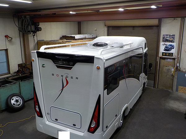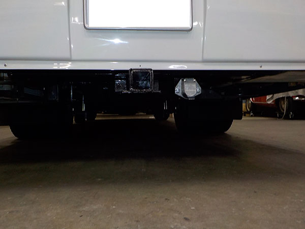 コースターキャンピングカーに特注ヒッチメンバー製作取り付けしています。
