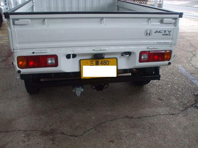 ホンダアクティ軽トラックに特注ヒッチメンバー取付が完了しました。