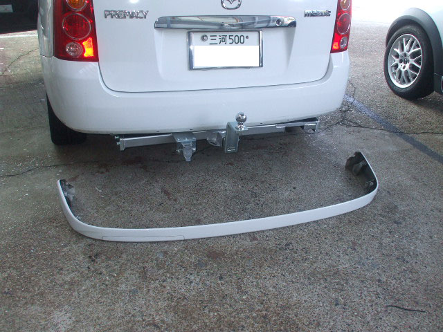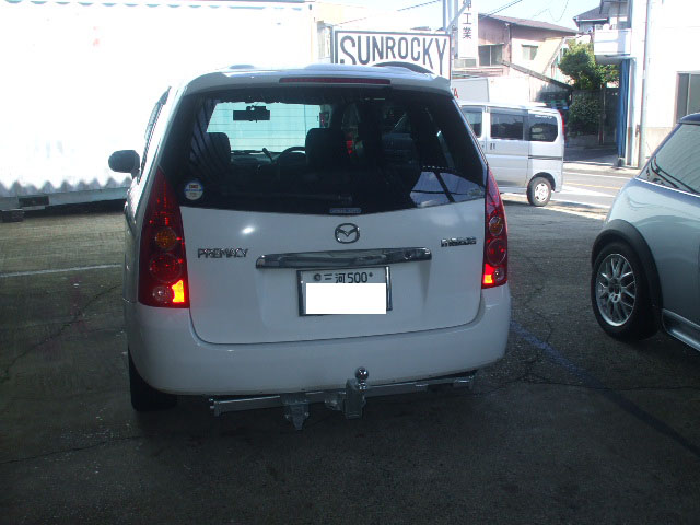 朝一番で入庫したプレマシーCPEWのヒッチメンバーを取り付けました。
