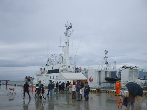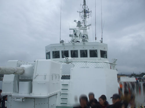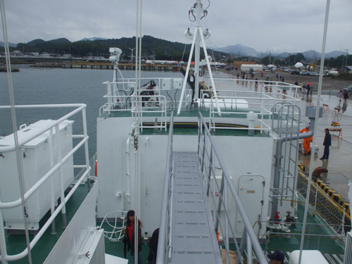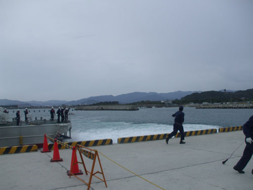 和歌山県御坊市で毎年行われている、みやこ姫港祭りにチームディープブルース http:// が来てアクロバッティック飛行をすると言うのでどうしても見たくて見に行ってきた。 台風が来ていて開催が危ぶまれたが、役場に問い合わせたら決行と言っていたし、パイロットもスタンバイしてると、予報もまずまずなので行くことにした。 土曜日18:30出発 伊勢湾岸、東名阪、新名神、京滋バイパス、第二京阪、近畿道を経て吉備湯浅PAにて休憩中 日高港に到着。祭り会場、指定駐車場とは少し離れた港の空き地にて朝を迎える。 日本の大きな港は何処へ行っても空き地ばかりで、道路も広く、場所によっては一等地にあるので徒歩圏内に店舗も沢山あり、漁港は好きな場所。 この港は周辺に店舗等はなかったけど。 早朝から釣り人が多かったね。 11月とはいえ港内でもこの綺麗さ。 9:30頃、祭り開幕を前に船内見学が出来る海保巡視船みなべが来たので着岸作業を見に行く。 右舷アンカーを入れて、、 バウロープを岸壁に投げ、その場回頭 スターンのロープも船上甲板員が錘の付いた細いロープを投げ、 それを陸上の隊員が拾い上げ、その細いロープに繋がった係船ロープをたぐる。 係船完了 ちなみにこの船の推進器はウォータージェット3基 http://www.kaiho.mlit.go.jp/05kanku/index.htm お祭り開幕。みやこ姫の皆様 ご覧の様に午前中は晴れと言っていた天気予報が外れ、雨は小降りながら低くたれ込む雲。 結局午前のアクロバティック飛行は中止。 息子は早速出店へ。当日の小遣いとして500円渡したが、真っ先に一回50円の輪投げを連続10回挑戦し、全て外し、店のオバチャンが朝一番のお客さんだからと100円ショップでも、もっとマシなモン有るやろうってな拳銃のオモチャくれた。だってタマ撃ったら1mも飛ばない。笑えたね。お金の使い方が両津勘吉ばりの無計画さで自分の息子ながら呆れた。 で、気を取り直して、日本の海の安全と権益を守る海保巡視船船内見学 さすが海保のロープワークだね。 船室の食堂にあった本棚。 残念ながら見学できなかった船長室 かなり見にくいけど、船検証 主基(エンジン)が3基あるので、それらのリモコンレバー 意外と普通な操舵輪 甲板に出る 船内見学終了 祭り会場の横にはわざわざ境港まで見に行かなくても、こっちにもある、今はやりの鬼太郎 関西電力をはじめ、各企業ブースでは無料で体験できる物や子供用の菓子類で、娘は計画的に500円を貯金。 午後は更に雨が強くなり、結局アクロバティック飛行は中止に。 でも祭りは楽しかった。来年も行こうかなと思わせるほど。 見るつもりだったアクロバティック飛行はyoutubeで。 |