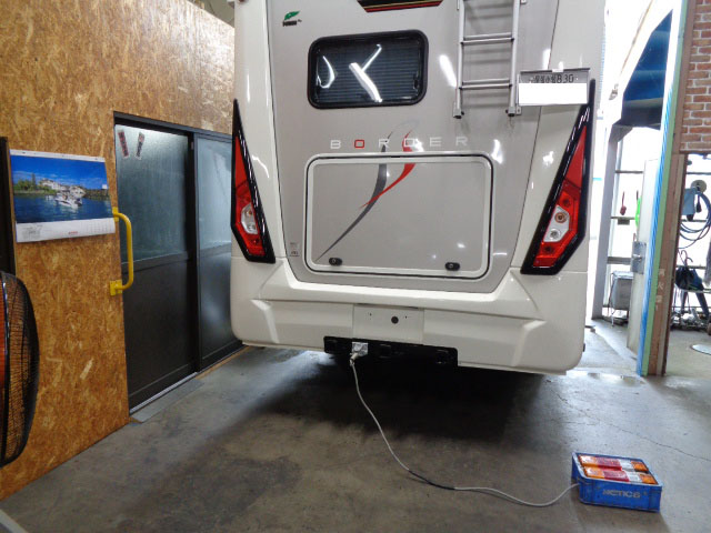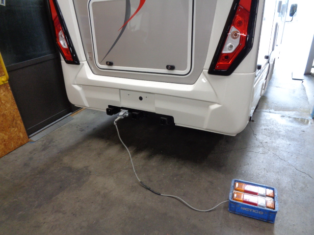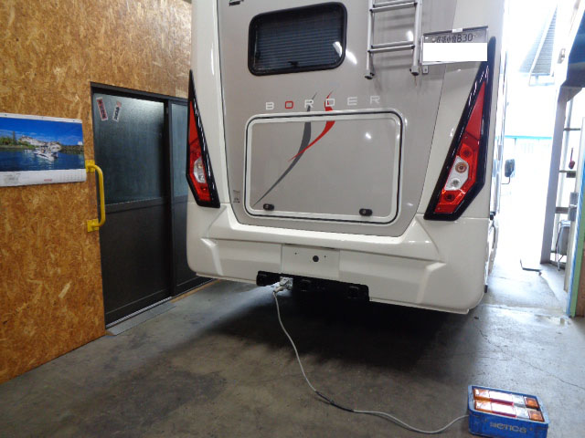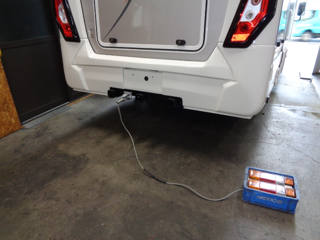 コースターキャンピングカーに特注ヒッチメンバー製作取付しています。