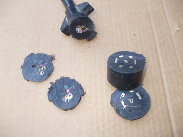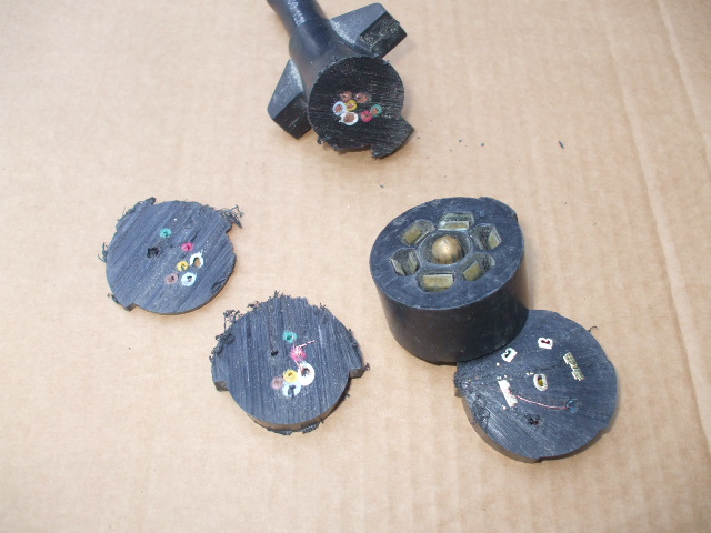 普通配線をばらすためにコンセントは分解できるが、エアストリームに付いてきたトレーラー側のコンセントはどう見ても一体構造。どうせ廃棄処分だからと、切断してみた。