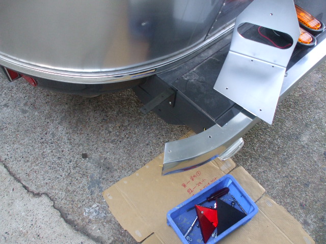 よくフェンダーとかに貼り付けて有るのを見るけど、斜めの面に付けた場合、反射光があさっての方向に反射してしまって、本来の検査基準からは外れるので、ブラケットを付けてきちんと前向きに。