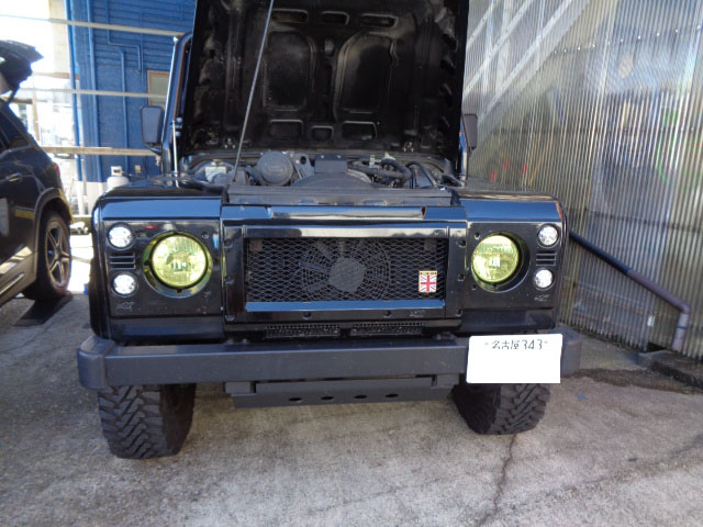 ランドローバーディフェンダー90に牽引の配線作業を行っています。