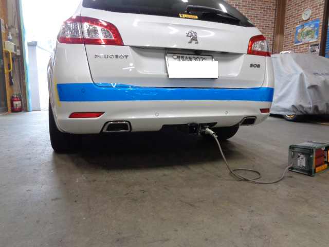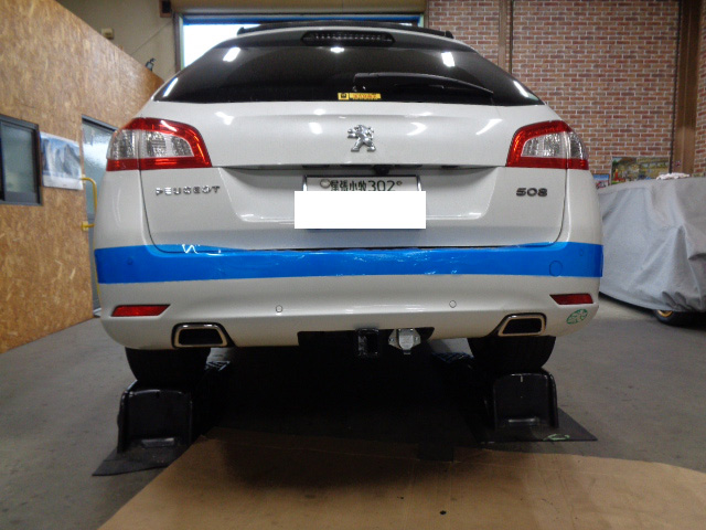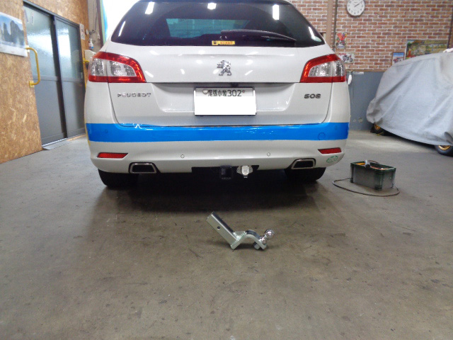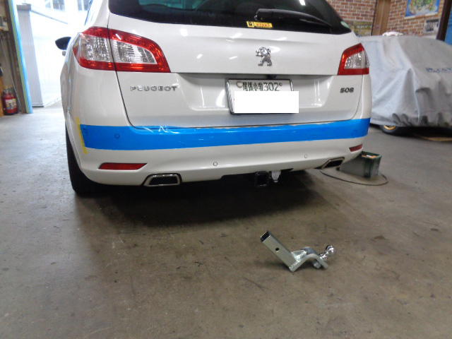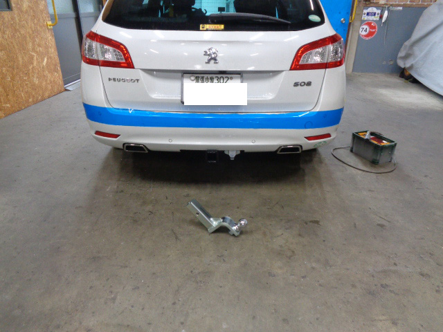 プジョー508SWに特注ヒッチメンバー製作取付しています。