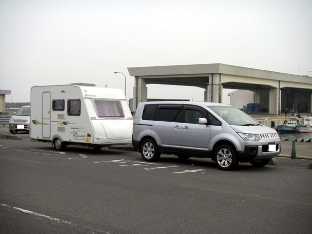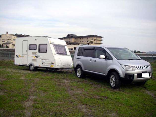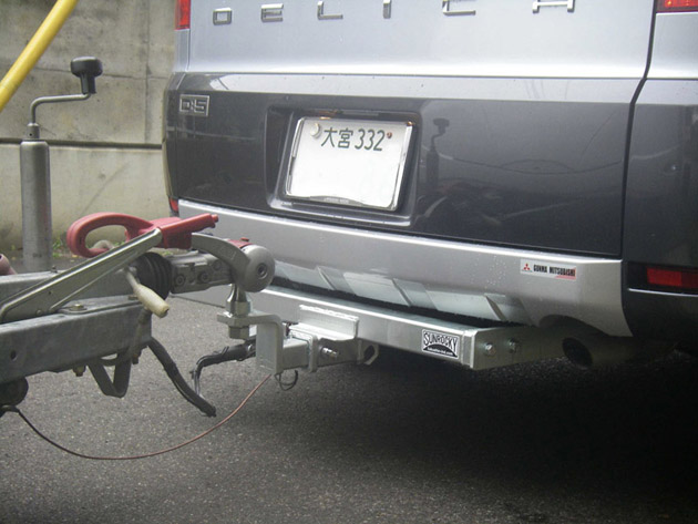 先月販売しましたデリカD5用ヒッチメンバーを御客様が装着し、無事初牽引で800kmも走ってきたというので画像を頂きました。