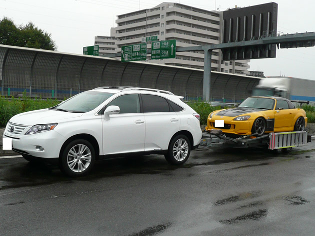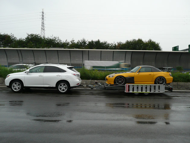先日弊社工場でレクサスRX450hにヒッチメンバーの取付を行ったO様からレース遠征の際の画像が届きました。