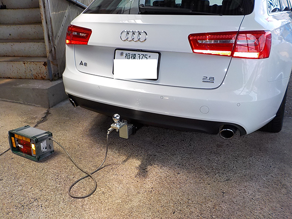 アウディA6アヴァントに特注ヒッチメンバー製作取付しています。
