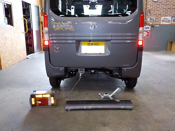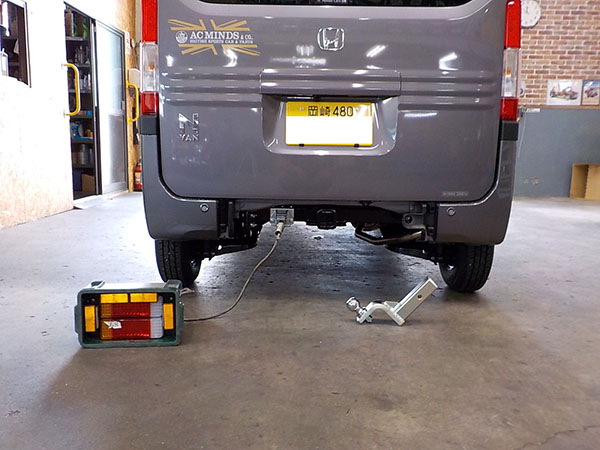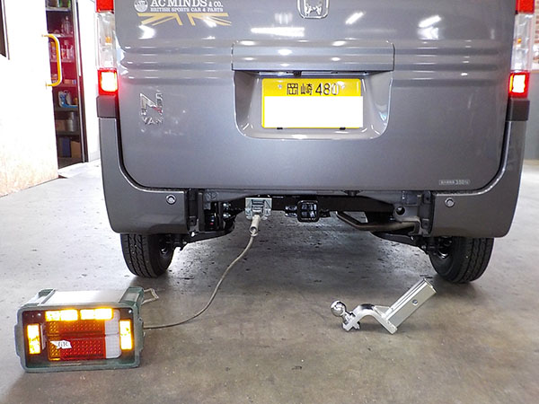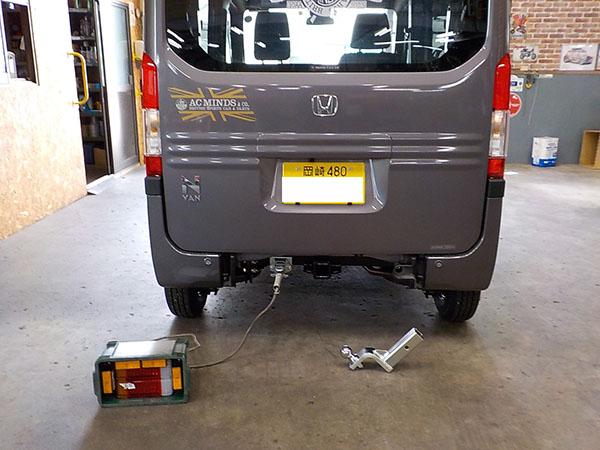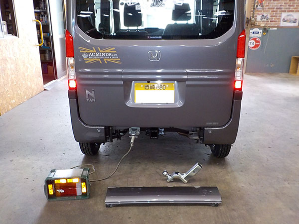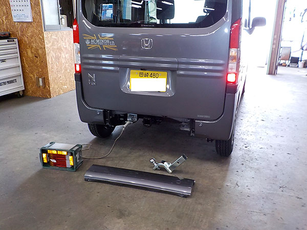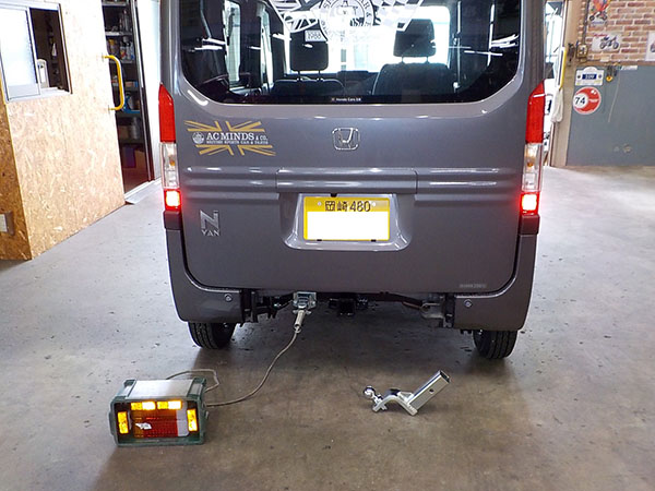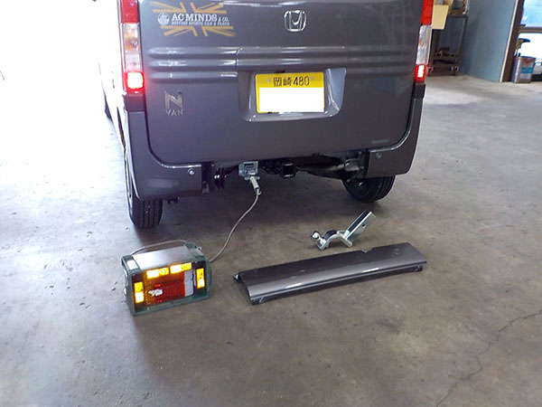 ホンダ N-VANに特注ヒッチメンバー製作取付しています。 牽引しない時はバンパーのカバーを付けられます。 その代わり、床下スペアタイヤは撤去。スペアタイヤは無くても車検は通ります。 ちらっと写ってるけど、弊社現場事務所の壁に、以前車載トレーラーをご購入頂いた、ファイヤー安藤さんの全国制覇ポスターを一応関係者と言う事で頂きましたので超嬉しく貼ってあります。 http://fukushin-ind.com/ |