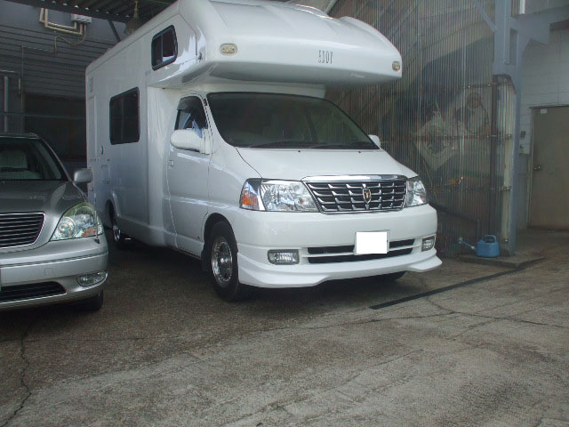 グランビアキャンパーに特注ヒッチメンバーの取付が完了しました。