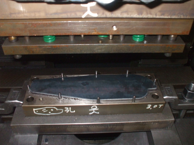 実際に作業したのは昨日なんですが、トレイルブレイザーのリクライニングキットの受注が昨年末に有って、結局年末で材料が入らず、仕事始めの昨日材料入荷。即製造するためのプレス金型をセットして、部品を作りました。