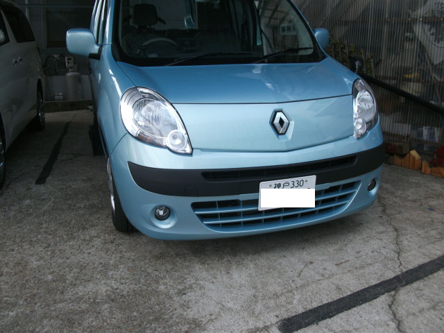 ルノーカングーに特注ヒッチメンバーの取付作業をしています。