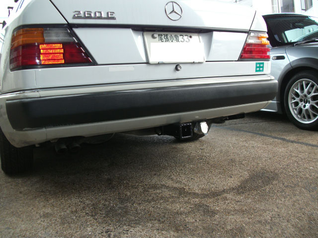 昨日作業したメルセデスベンツ260Eの特注ヒッチメンバー取付作業が完了しました。