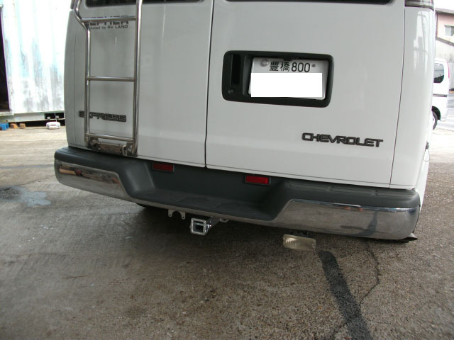 シボレー エクスプレスバンにヒッチメンバー取付が完了しました。