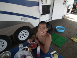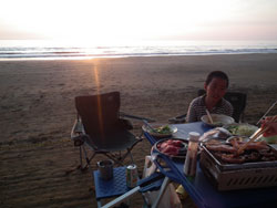 今年も毎年恒例、夏の千里浜へ海水浴。 8/8 トラベルトレーラー所有の皆様は夜間走るのが得意のようですが、私は夜が苦手。 いつも早朝出発しています。この日は2:30に起きたので、名古屋高速で清洲まで。 腹が減ったので朝マック でもホントは吉牛大好き。でも女房は朝から良くそんな物食えるねと冷たい そのまま名神-北陸道-能登道 まもなく千里浜 既に到着していたM様ご家族 毎年夏、この場所で会ってます。 到着するなり、泳ぎ始める子供達 千里浜は透明度も高く、遠浅なので安心です。 かき氷で喜ぶ息子 こんな事も冷凍庫を運んで居るからこそ出来る。 朝鮮半島西側に台風があり、いつもより若干うねりが入っていたので、近くのホームセンターに行き、 ボディボードを買ってきたら、二人とも上手に遊んでた イイオヤジになれてるかな 千里浜の夕日を見ながら、早起きだったので、21時就寝 8/9 翌日は朝一番を狙って能登島水族館へ トレーラーは千里浜に残して。 屋内は良かったけど、超暑かったので早めに撤収。 ランチを取りに何処へ行こうか考えたけど、地理感無いし、とりあえずハズレはないだろうと 七尾フィッシャーマンズ・ワーフ 能登食祭市場 http://www.shokusai.co.jp/ へ でも何処にでもあるような海鮮丼しかなかった。店の外から見る限り、地の物使ってます!って感じの雰囲気だったけど、出てくる魚は流通物だね。ちょっとがっかり。 祭事館は能登にはこんな祭りがあるんだーって感じの。是非見てみたいね 去年青森出張して、トレージャーアイランドさんに、五所川原のねぷた館に連れて行って貰ったけど、そのときも大きさにビックリしたなあ。あの祭りも生で見てみたいけど、一番忙しい盆前はなかなか難しいよね。 夕方トレーラーに戻り、子供達はもうひと泳ぎし、 夜は浜辺で花火。喜んでたね~ その2へ続く https://sunrocky.blog-rpg.com/Entry/424/