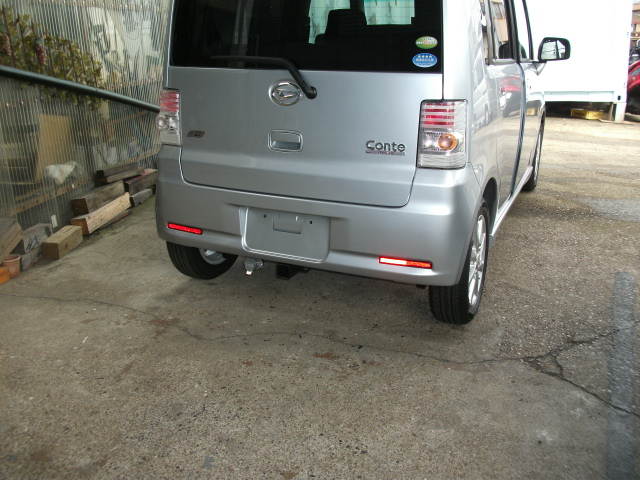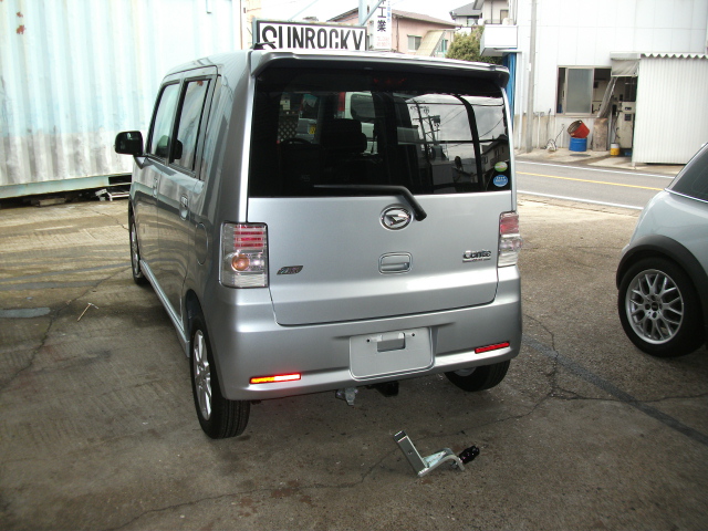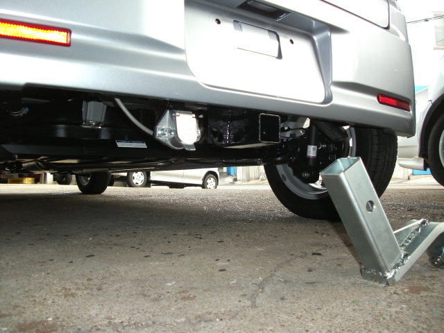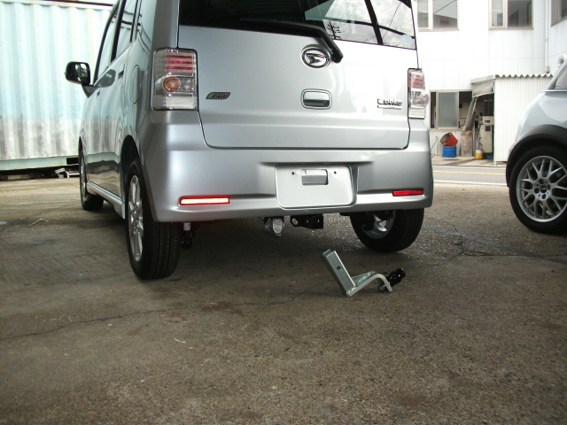 ダイハツムーブコンテL575Sに特注ヒッチメンバー取付作業が完了しました。