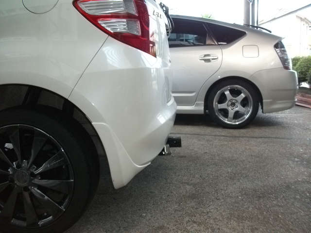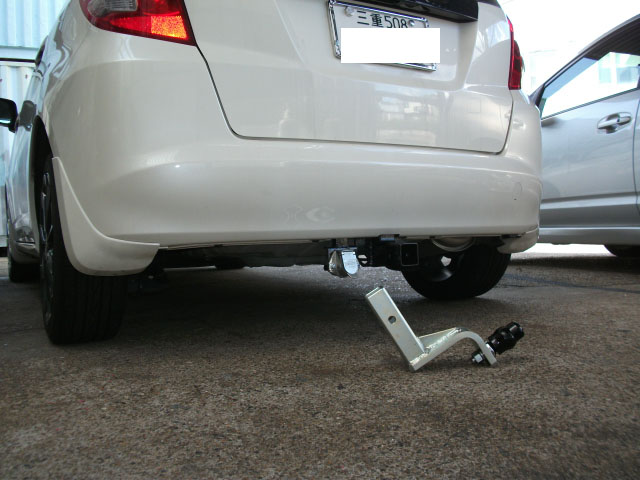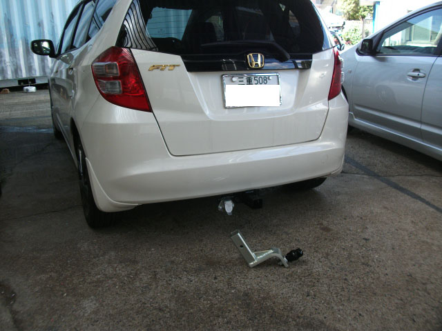 フィットGE8の特注ヒッチメンバー取付作業が完了しました。