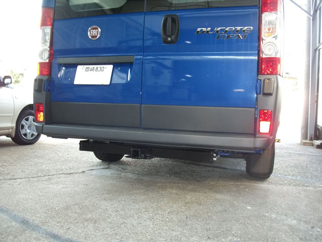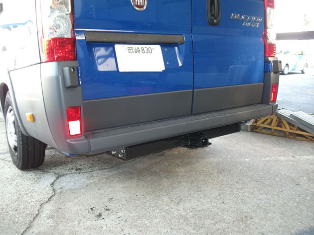 今朝入庫して作業していたフィアット デュカトの特注ヒッチメンバー取付作業が完了しました。