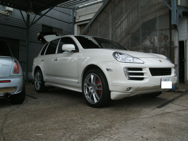 エアロ付きのカイエンに特注ヒッチメンバーの作業をしています。