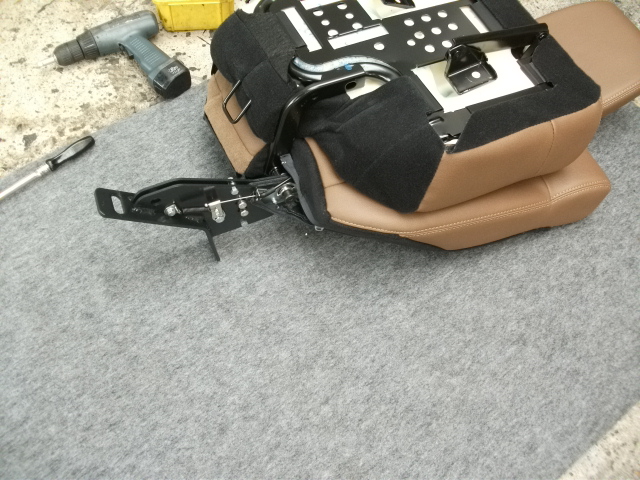 朝一番の入庫で、 ジープアンリミテッド トレイルエディションに リクライニングキットを取り付けました。 http://fukushin-ind.com/recliner_seat_kit/Jeep_WRANGLER_Unlimited_rk.html お客様の指定で、通常の商品は右側の様な銀色のメッキ仕上げですが、 今回は黒色のメッキ仕上げにしています。