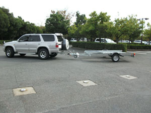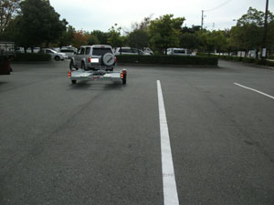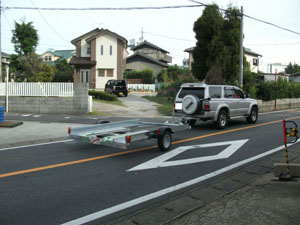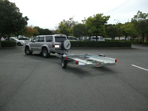 W76車載トレーラーにスズキスイフトを積んで牽引されます。