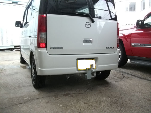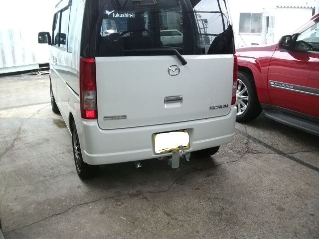 スズキエブリィのOEM車両マツダスクラムに、エブリィ用のヒッチメンバーを取り付けました。